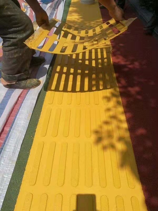 使用方法:現(xiàn)場連續(xù)施工,施工溫度:5C-35'℃ (CastinplaceBLindtracks)是指采用無機(jī)高強(qiáng)聚合物材料結(jié)合專用模具,在現(xiàn)有路面基礎(chǔ)上通過現(xiàn)澆方式的方式制作而成的連續(xù)性盲道,分為導(dǎo)盲條和導(dǎo)盲點(diǎn)兩種。標(biāo)準(zhǔn)寬度為300mm,400mm,500mm和600mm四種,也可根據(jù)用戶需要靈活定制現(xiàn)澆盲道區(qū)別手盲道磚,他是一種現(xiàn)場制作的連續(xù)型盲道系統(tǒng),即在現(xiàn)有新舊混凝土路,瀝青路面和磚石等路面上通過現(xiàn)場加鋪形成的連續(xù)盲道。現(xiàn)澆盲道盲條和盲點(diǎn)設(shè)計(jì)和安裝嚴(yán)格執(zhí)行依照現(xiàn)行國家規(guī)范《城市道路和建筑無障礙設(shè)計(jì)規(guī)范JGJ-50-2001》可用于任何需要盲道的場所,尤其適用于瀝青或混凝土道路完成后的盲道加鋪。無障礙設(shè)計(jì)規(guī)范《JGJ-50-2001》可用于任何需要盲道的場所,尤其適用于瀝青或混凝土道路完成后的盲道加鋪。